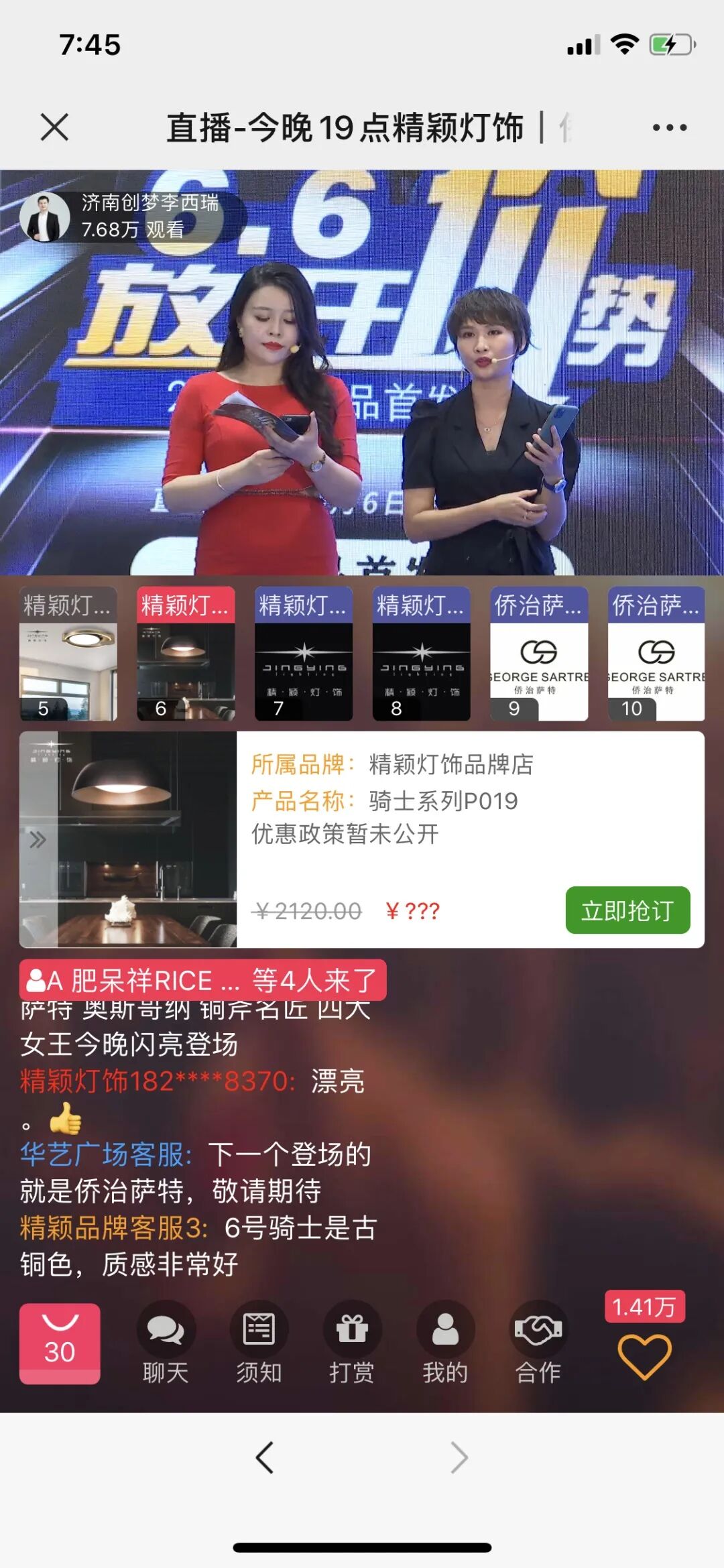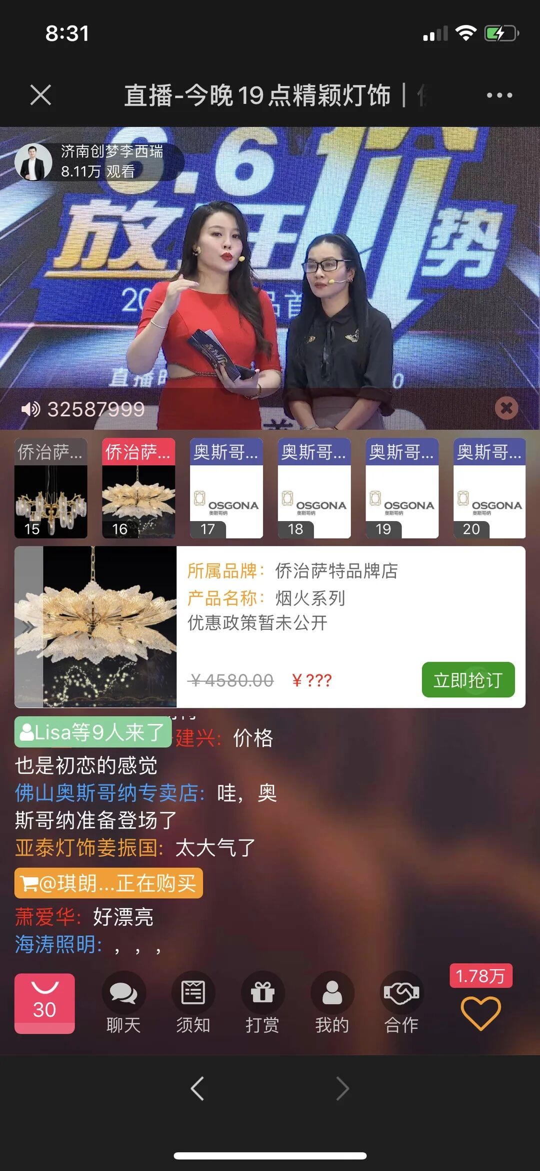 更有奥斯哥纳带来的追光者、流音、梦•境、国际高端定制、星云、春暖花开、逐梦等7大系列产品;铜斧名匠带来的山影系列台灯、松海、千里江山、金玉满堂、春燕、福如东海、喜事临门等7大系列爆款。数不尽的新品统统零利润销售,价格低到尖叫!引得大家疯狂抢购,一上架就被秒杀一空。